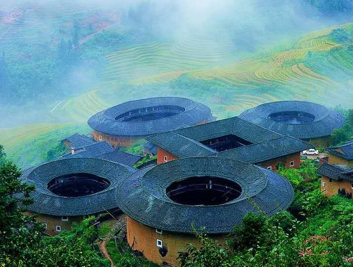 福建土樓產(chǎn)生于宋朝時代,明、清朝時期逐漸成熟,并一直延續(xù)至今。福建土樓是世界上獨一無二的山區(qū)大型夯土民居建筑,依山就勢,布局合理,吸收了中國傳統(tǒng)建筑規(guī)劃的“風(fēng)水”理念,適應(yīng)聚族而居的生活和防御要求,巧妙地利用了山間狹小的平地和當?shù)氐纳?、木材、鵝卵石等建筑材料,是一種自成體系,具有節(jié)約、堅固、防御性強的特點,又極富美感的生土高層建筑模式。福建土樓的建筑材料甚為奇特,由粘土、糯米、紅糖、竹片、水組成,建成的土樓冬暖夏涼,具有很強的抗臺風(fēng)、抗地震能力。曾為湖南衛(wèi)視《爸爸去哪兒第三季》第三站的拍攝地。2016年8月3日,國家旅游局召開新聞發(fā)布會,嚴重警告南靖土樓景區(qū)。