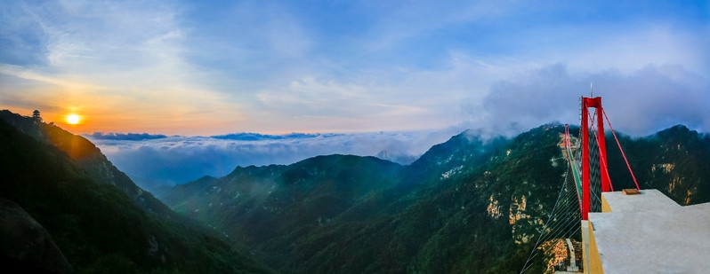 棧道始于虎踞龍盤石,全長2999米,由懸崖棧道和森林木棧道組成,懸崖棧道長1999米,森林木棧道長1000米,為江北第一大棧道。棧道險峻處如飛龍凌空,游走于絕壁深壑,氣勢磅礴,令人驚心動魄,震撼不已;平緩處若臥龍蟠曲,奇松怪石,美不勝收,令人目不暇接;蜿蜒處似游龍出沒,林海掩映,鳥語花香,令人流連忘返。心隨境遷,行走在棧道的不同位置,會有截然不同的感受,有龍行天下之豪邁,有平步青云之喜悅,有臨風嘯傲之胸襟,有閑庭漫步之悠然,有坎坷曲折之感慨……都會讓人心有所動,深感不虛此行。
