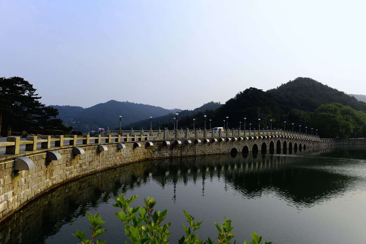 蘆林大橋高30米,橋壩一體,攔水成湖,湖水如鏡,似發(fā)光的碧玉鑲嵌在林蔭秀谷之中,在縹緲的云煙襯托下,猶如天上神湖。