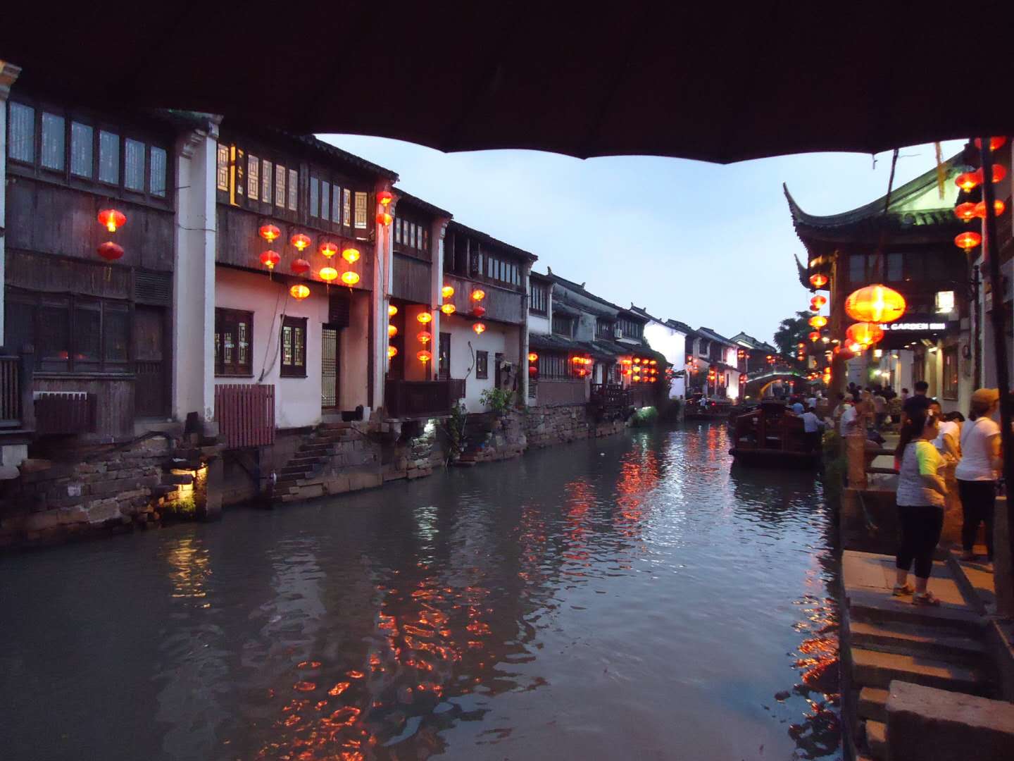 它中間是山塘河,真是朱欄層樓,柳絮笙歌。山塘街又是一條典型的水巷,這里的房屋沿河有石級(jí)。