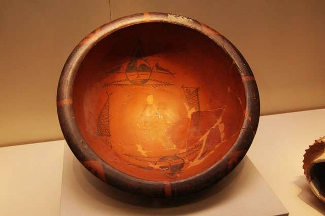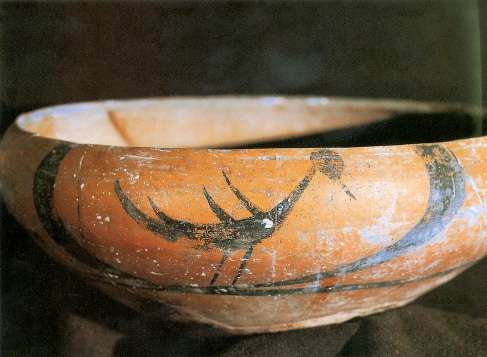 從半坡遺址中看到的大量絢麗多彩的陶器,表明這一時(shí)期的文化為彩陶文化。其繪畫作品有的豐富生動(dòng),有的神秘難測(cè),有的則圖案化,多繪在盆、缽、罐、細(xì)頸壺上,繪畫作品多繪在小口器肩,腹和口部,直口器多繪在外壁或口緣外側(cè),大口器多繪于器內(nèi)壁。多見(jiàn)黑彩,還有少量紅彩。