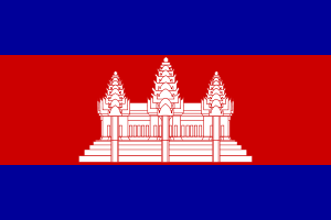柬埔寨國旗以紅、藍(lán)及白色為主色,正中間白色殿堂為吳哥窟,被紅及藍(lán)條包圍著(線條比例 1:2:1)紅色代表民族,白色代表佛教,藍(lán)色象征王室,符合柬國的國家銘言“民族、宗教、國王”。在1993年柬埔寨競選回到君主制后被重新使用。