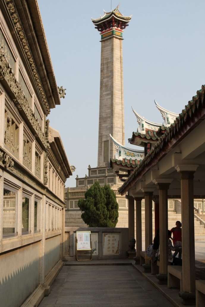 陳嘉庚陵墓,墓坐子向午,呈壽龜形,墓蓋用十三塊六角形的青斗石鑲拼而成,光可鑒人。
