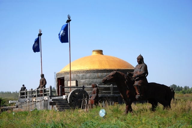 由入口門景往北展延的大道就是成吉思汗圣道和風(fēng)景道。我們就可以沿著吉祥的成吉思汗圣道和風(fēng)景道參觀各個(gè)景點(diǎn),最后到陵宮,拜謁成吉思汗陵[2]。