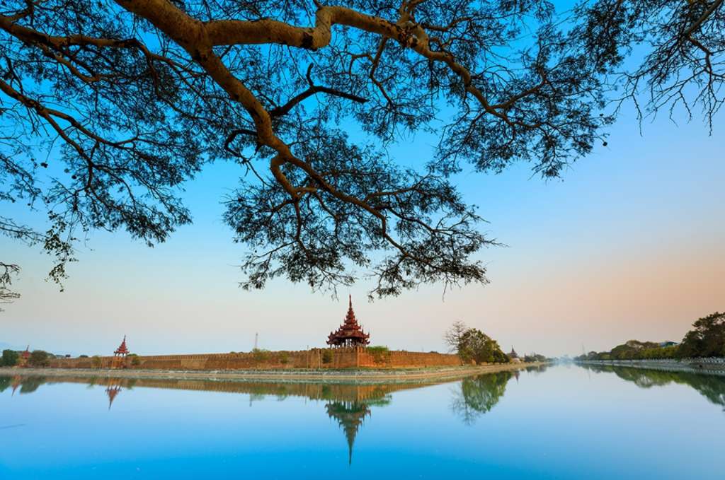 曼德勒皇宮位于古城內(nèi)正中央,原為緬甸最后一個(gè)王朝貢榜王朝的皇宮,二次世界大戰(zhàn)時(shí)被火毀,現(xiàn)在原址重建。