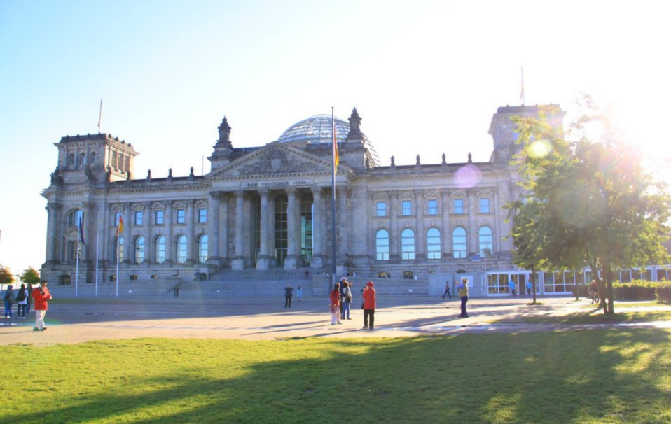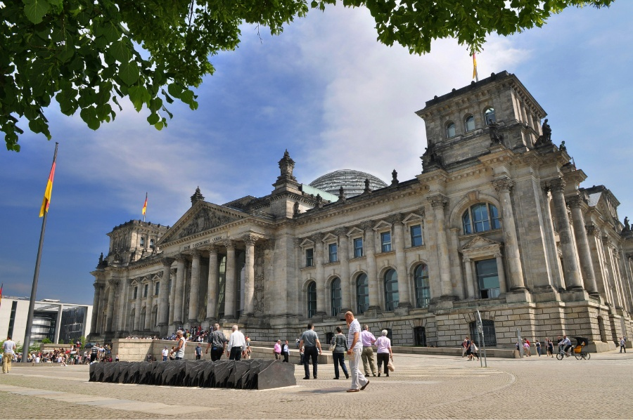 柏林的德國(guó)國(guó)會(huì)大廈建于1884年,由德國(guó)建筑師保羅·瓦洛特設(shè)計(jì),采用古典主義風(fēng)格,最初為德意志帝國(guó)的議會(huì)。1918年11月9日,議員菲利普·沙伊德曼通過(guò)國(guó)會(huì)大廈的窗口宣告共和國(guó)的成立。1933年2月27日大廈失火,部分建筑被毀,失火原因不明?!?/span>國(guó)會(huì)縱火案”成為納粹統(tǒng)治者迫害政界反對(duì)派人士的借口。二戰(zhàn)中,大廈遭到嚴(yán)重毀壞。1945年4月30日,蘇聯(lián)紅軍把紅旗插上國(guó)會(huì)大廈的屋頂,宣布了反法西斯戰(zhàn)爭(zhēng)的勝利。1961至1971年間,大廈按保羅·鮑姆加藤的設(shè)計(jì)方案重建。重建的國(guó)會(huì)大廈對(duì)建筑進(jìn)行了簡(jiǎn)化,省去了1945年被炸掉的大廈圓頂部分。這座曾位于柏林墻邊界上的大廈內(nèi)曾辦有“德國(guó)歷史問(wèn)答”展覽。該展覽遷至德國(guó)大教堂中。兩德統(tǒng)一之后,德國(guó)聯(lián)邦議會(huì)決定重新遷入國(guó)會(huì)大廈。1990年10月3日德國(guó)人民在國(guó)會(huì)大廈前慶祝了國(guó)家的重新統(tǒng)一,同年12月20日,第一屆全德聯(lián)邦議會(huì)確定柏林為統(tǒng)一德國(guó)的首都,國(guó)會(huì)大廈則被定為德國(guó)聯(lián)邦議院所在地。1994年至1999年,諾曼·弗斯特爵士以大廈最初的規(guī)模為藍(lán)本設(shè)計(jì),對(duì)國(guó)會(huì)大廈進(jìn)行了重新修建,建成為一座現(xiàn)代化的議會(huì)辦公大樓,新建的穹形圓頂供人游覽。1994年修復(fù)工程開始之前,國(guó)會(huì)大廈曾成為全歐洲最引人注目的藝術(shù)品。德國(guó)聯(lián)邦議院于1998年底遷入國(guó)會(huì)大廈,1999年在此選舉下一任聯(lián)邦總統(tǒng)?,F(xiàn)曾讓人爭(zhēng)議一時(shí)的穹形圓頂已成為柏林城的新標(biāo)志。