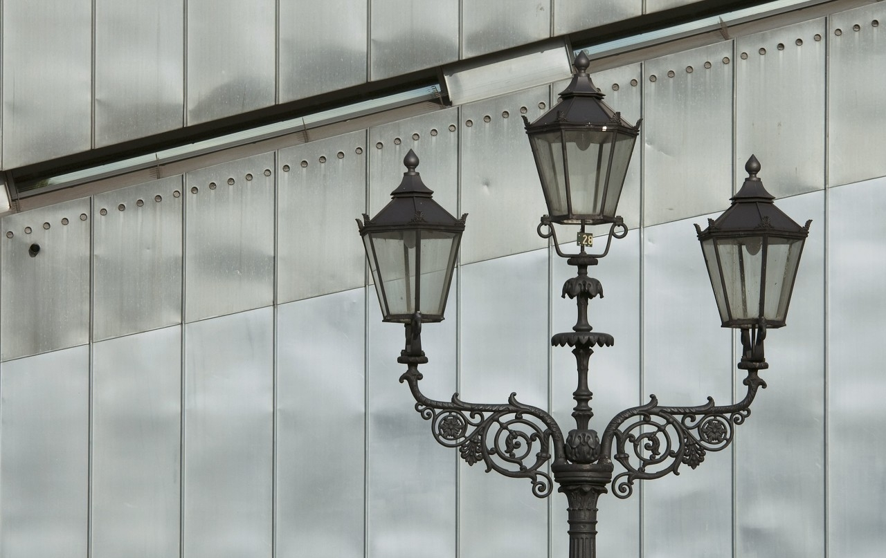 此博物館的基地圖,從上方看是線型的閃電狀,呈之字形(圖片),這也是其綽號(hào)“閃電戰(zhàn)”(blitz)的由來(lái)。外觀則由鍍鋅金屬片覆蓋,窗口都是斜線狀,不規(guī)則的橫割建物本體,這些窗口線是依據(jù)柏林地圖上的一些猶太歷史地點(diǎn)而被連起的,它們也被視為連結(jié)德國(guó)猶太人不同時(shí)期的破碎象征,此建物本身沒(méi)有對(duì)外的出入口,唯一一個(gè)出入口在隔壁的大樓,也就是德國(guó)歷史博物館里。這個(gè)出入通道的樓梯和走廊被設(shè)計(jì)的相當(dāng)狹窄,并連到新建物的高塔里,經(jīng)由高塔才能通到新建物的各個(gè)樓層。此塔與通道象征著德國(guó)和猶太人歷史是不能分離的,也是猛烈而隱密的。