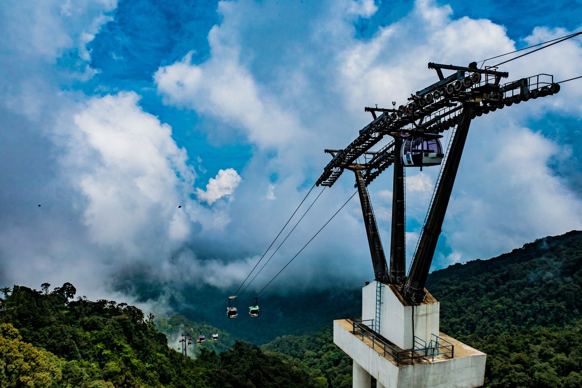 云頂纜車從位于梧桐再也的云頂纜車站出發(fā),直達(dá)美星酒店。云頂纜車由馬來西亞第四任首相拿督斯里馬哈蒂爾·本·穆罕默德醫(yī)生于1997年2月21日主持開幕。云頂纜車以每8人一車廂并在一小時(shí)內(nèi)載送2000名乘客上山。它的極速為每秒6公尺,只需大約15分鐘便能完成3.38公里長(zhǎng)的登山路程。隨著纜車的緩緩上升,馬來西亞特有的奇花異草,以及各種只有熱帶才有的植物、動(dòng)物和鳥類躍然眼前。往往纜車坐到半山腰就能看到云霧繚繞,如入仙境,到了山頂,室外也經(jīng)常是云里霧里,看來“云頂”這個(gè)名字確實(shí)也是有點(diǎn)說法的。
