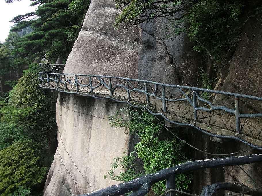 在海拔約1600米的高山懸崖絕壁上,橫空出世,向外懸挑出一條全長約3700米,寬1.3米至2米的鋼筋混凝土棧道。因其中有2700米不見臺(tái)階,宛若玉帶,平整如岸,故名西海岸。由三清山風(fēng)景名勝區(qū)管委會(huì)于2002年6月建竣。