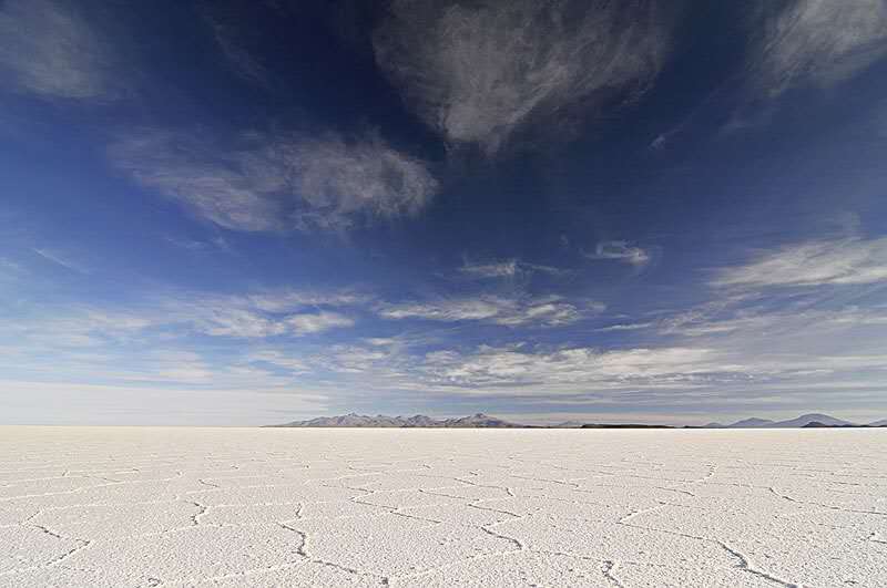 在高原南端有一些冰川融化時留下的鹽湖,而在1萬年前最后一個冰期(第四紀冰期)結(jié)束時,湖水已逐漸消失。高原上最大并最令人印象深刻的就是烏尤尼鹽沼(Salar de Uyuni)。每年夏季(雨季12月至次年1月),它被雨水注滿,形成一個淺湖;而每年冬季(旱季7月至10月),湖水則干涸,留下一層以鹽為主的礦物質(zhì)硬殼,中部達6米厚。人們可以駕車駛過湖面。尤其是在雨后,湖面像鏡子一樣,反射著好似不是地球上的、美麗的令人窒息的天空景色,這也就是傳說中的“天空之鏡”。由于面積空曠,極其光滑(覆蓋著淺水),同時又極平整(海拔差異極?。?,地表反射率極高,使阿塔卡瑪成為一個理想的測試和校準地球遙感衛(wèi)星之地。