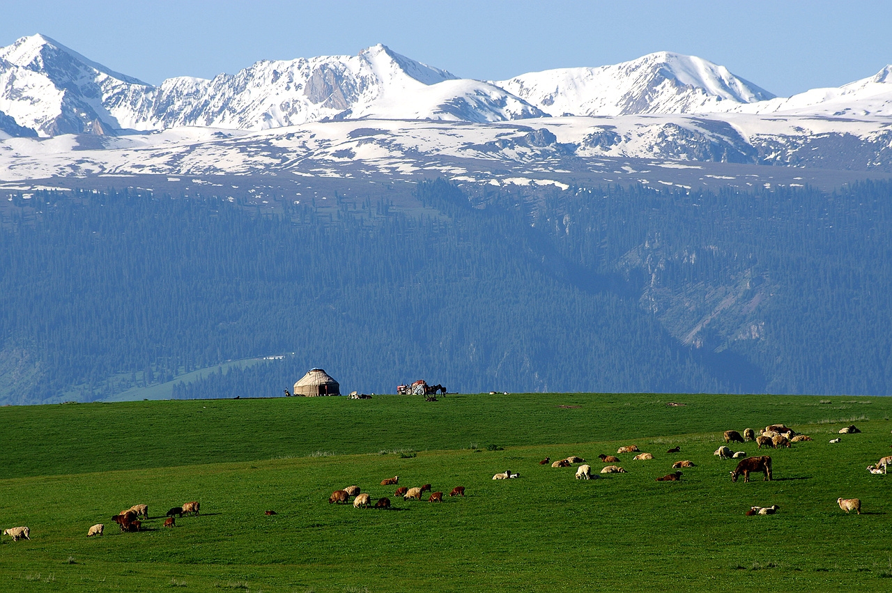 昭蘇草原是我國最著名的四大草原之一。盛夏七月,那里綠水青山,油菜花盛開,氣候涼爽,更有草原石人、圣佑廟、格登山記功碑等人文勝跡,是新疆旅游、避暑的首選之地。