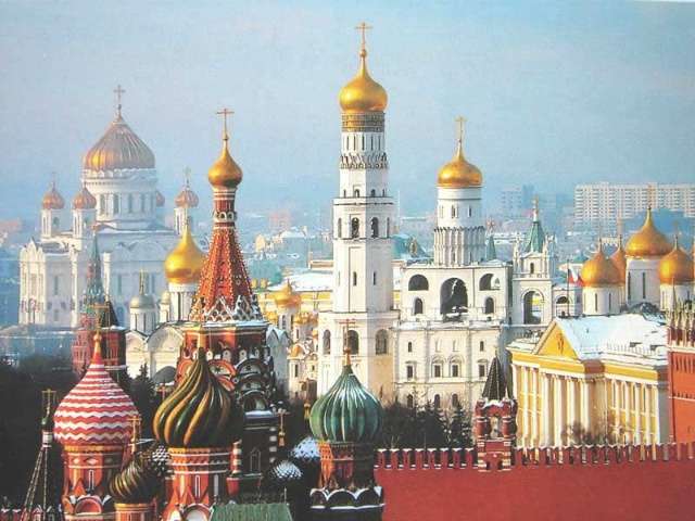 1320年,伊凡一世開(kāi)始用橡樹(shù)圓木和石灰石建造克里姆林宮,裝飾以復(fù)雜精美的雕刻,每個(gè)屋頂建造成特殊的圓拱形,克里姆林宮成為莫斯科公國(guó)的中心。