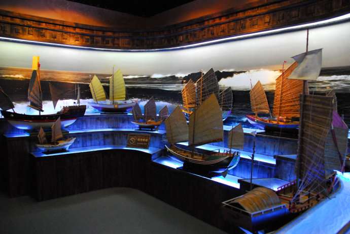 在莊嚴(yán)的陳列大廳里,人們可以看到一尊鄭成功的全身塑像。這位將軍身披戰(zhàn)袍,手按佩劍,昂首邁步,雄姿英發(fā),令人肅然起敬。塑像的兩旁,陳放著他當(dāng)年所用的銅炮、鐵炮和戰(zhàn)船的模型。鄭成功塑像佇立廳中,使我們仿佛看到他正威武地站在船上指揮臺(tái),指揮大軍船乘風(fēng)破浪,浩蕩東征;仿佛看到中華兒女,為收復(fù)祖國神圣領(lǐng)土,正冒著炮火奮勇前進(jìn)……