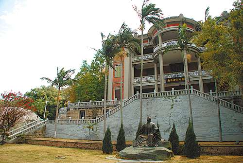 紀(jì)念館踞山面海,周圍樹林蓊郁,花木呈秀。古老的梧桐,芬芳的玉蘭,卓然而立的棕 櫚,樹干猶如美玉的玉竹,襯托出鄭成功紀(jì)念館令人崇敬肅穆氣氛。