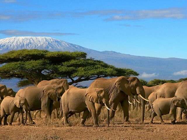 安波塞利國(guó)家公園(Amboseli Park)是非洲度假勝地之一,位于肯尼亞與坦桑尼亞交界地區(qū),肯尼亞邊境,在這里可以清晰地看到海拔5895米的非洲第一高峰乞力馬扎羅山。接近赤道的乞力馬扎羅山頂終年覆蓋著積雪,山下莽原景色優(yōu)美,安波塞利國(guó)家公園位于公園面積392平方公里,由于臨近云霧繚繞的非洲之巔——乞力馬扎羅山,吸引著一批批前來(lái)觀光的游客。安波塞利就是“干涸的湖”的意思。