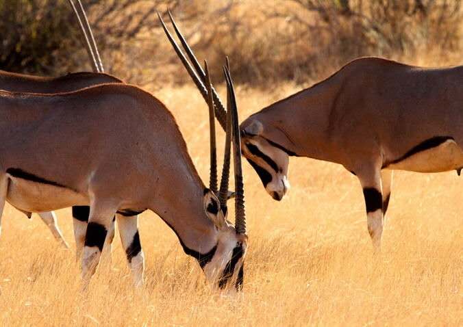 從肯尼亞雪山上流經(jīng)到地勢(shì)低的桑布魯?shù)囊镣咚髂崃_河(EwasoNyiro)是桑布魯?shù)纳矗?dāng)?shù)厝朔Q之為桑布魯之水(WaterSamburu),因?yàn)樗念伾首厣?,又稱之為棕色的水(Brown;Water),也正是因?yàn)檫@條寶貴的支流,給干旱的桑布魯增色不少,在這里,隨處可見(jiàn)成群的大象在河邊嬉戲,鱷魚在泥水里懶洋洋的沐浴日光浴,成群的河馬匍匐在河中,當(dāng)然這些動(dòng)物在肯尼亞其他地區(qū)也可以看到,但是桑布魯所特有的五大動(dòng)物(BIGFIVE)是極其罕見(jiàn)的,葛式細(xì)紋斑馬(Brevyzebra),東非劍羚(Beisaoryx),藍(lán)腿索馬里鴕鳥(Somaliostrich),網(wǎng)狀長(zhǎng)頸鹿(Reticulatedgiraffe),長(zhǎng)頸羚(Gerenuk)。這里多達(dá)380余種的鳥類同樣吸引著鳥類學(xué)家的眼球,象犀鳥,非洲食魚鷹等。