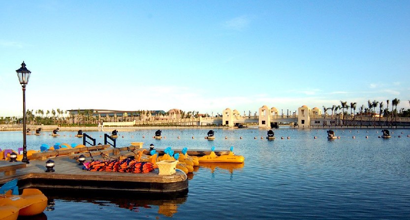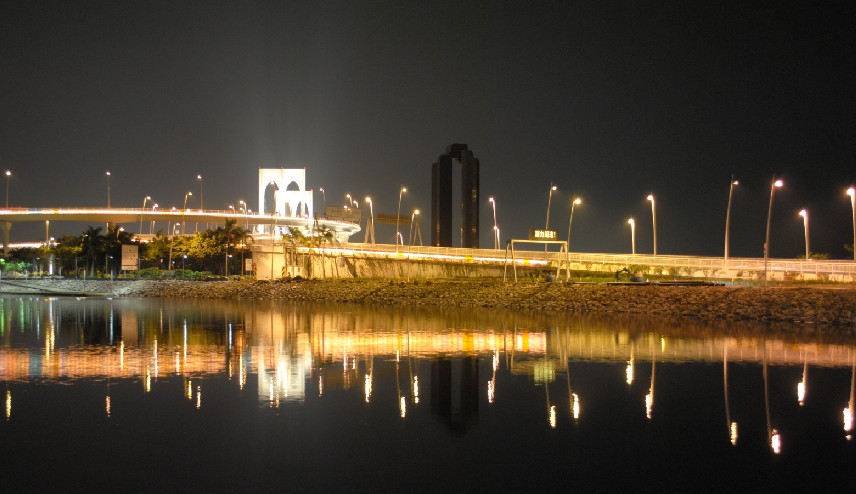 “融和門”是由四根高40米的支柱,版權(quán)所有山東聊城聊之旅國際旅行社有限公司,轉(zhuǎn)載必究!兩兩一組互勾而成。支柱為鋼筋骨架,混凝土澆注;支柱表面鋪設(shè)黑色花崗巖及葡式碎石。四周裝有射燈,在晚間照亮整座建筑物,美輪美奐,吸引游客觀賞。還設(shè)有供游人休息的長椅。