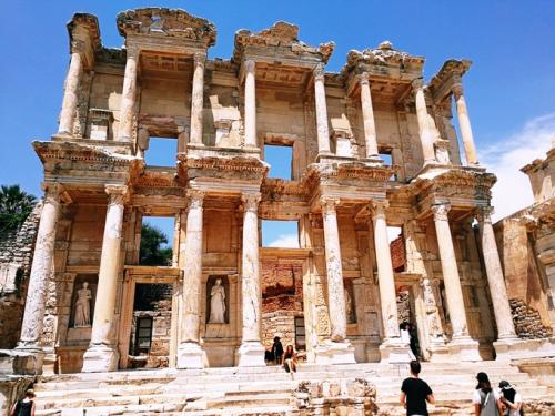 早在公元前6000多年的新石器時(shí)代,以弗所已有人類(lèi)居住的痕跡。以弗所于公元前10世紀(jì)建城,早期是古希臘城市。在古羅馬時(shí)期很長(zhǎng)一段時(shí)間內(nèi),它都是羅馬帝國(guó)中僅次于羅馬的第二大城市。公元一世紀(jì)的時(shí)候這里的人口已達(dá)二十五萬(wàn),而此時(shí),龐貝已泯滅在維蘇威火山的灰燼中。該城幾經(jīng)沉浮,最終在15世紀(jì)衰落,再也回不到昔日的輝煌了。還好,留下的遺跡已足夠讓我們一瞥舊日榮光。
