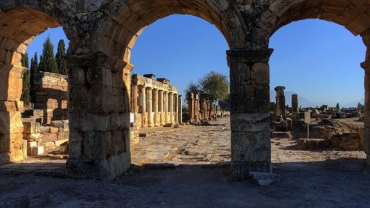 希拉波利斯的羅馬城鎮(zhèn)廢墟便在這個(gè)遺址附近,包括劇院、許多陵墓和一些老的溫泉浴場。