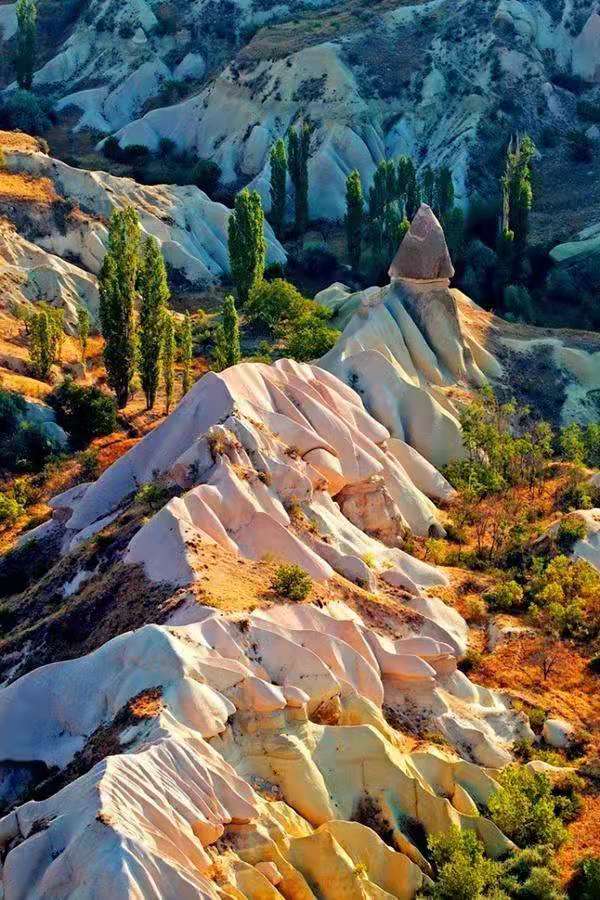 卡帕多西亞(Cappadocia,在古土耳其叫Kapadokya)以獨特的風(fēng)景聞名,奇特的巖石構(gòu)造、巖洞和半隱居人群的歷史遺跡使得這兒的“奇石林”與該國的棉堡齊名,同挾世界文化自然雙遺產(chǎn)之名,甚至還要比后者早三年入選。除了格雷梅(Greme)谷地、Ihlara峽谷等亮點,來到這兒還可以拜訪到一些令人驚嘆的地下城市。從坐熱氣球俯瞰漫山遍野的蘑菇屋、探訪當(dāng)?shù)氐镍澴游菝窬?,到入住巖洞里的五星級酒店,此情此景在其他任何阿拉伯城市都體驗不到。