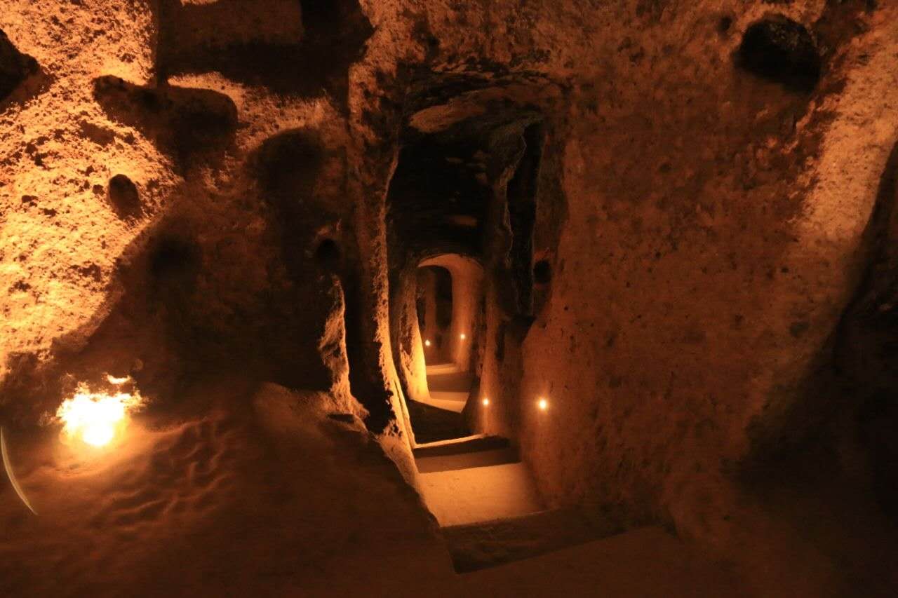 卡伊馬克勒地下城這座40米深的八層地下城市,可容納一萬人居住,早在公元前的西臺人(Hittie)時期就已經(jīng)開始挖掘了。他們也是世界上最早以物換物的人。直到公元前2世紀(jì),第一批基督教徒為了躲避羅馬軍隊的鎮(zhèn)壓逃難至此。他們發(fā)現(xiàn)了隱藏在地下的城市,由于有很多出入口,而且很難被發(fā)現(xiàn),便開始進(jìn)一步發(fā)掘,擴大整個地下城市的規(guī)模。
