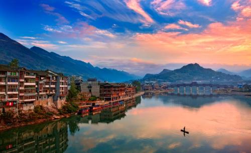 濯水古鎮(zhèn)位于重慶市黔江區(qū)東南角濯水鎮(zhèn)境內(nèi),地處烏江主要支流阿蓬江畔,距黔江主城26公里,渝懷鐵路、渝湘高速公路、國(guó)道319線穿境而過(guò),距舟白機(jī)場(chǎng)26公里,交通便利,是國(guó)家AAAA級(jí)景區(qū)、國(guó)家級(jí)歷史區(qū)文化名鎮(zhèn)。是一個(gè)集土家吊腳樓群落、水運(yùn)碼頭、商貿(mào)集鎮(zhèn)于一體的千年古鎮(zhèn)。