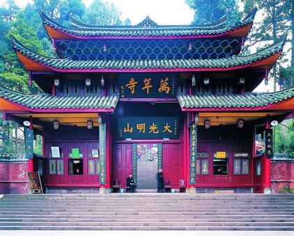 萬年寺,位于四川省峨眉山,由山麓報(bào)國寺上行約15公里,踞觀心嶺下,門迎大坪、牛心等寺和石筍、缽孟諸峰,海拔1020米,為峨眉山主要寺廟之一,全國重點(diǎn)寺院之一。