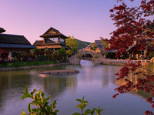 “拈花灣”的命名,一方面源于靈山會(huì)上佛祖拈花而迦葉微笑的經(jīng)典故事拈花一笑,同時(shí)也緣于它所在的地塊形似五葉蓮花的神奇山水。小鎮(zhèn)整體建筑風(fēng)格與日本奈良雖然相似,但其實(shí)是源自于唐朝時(shí)期的建筑結(jié)構(gòu),融入了中國(guó)江南小鎮(zhèn)特有的水系,打造出了一種獨(dú)有的建筑風(fēng)格,使得整個(gè)小鎮(zhèn)沉浸在美輪美奐的意境中。