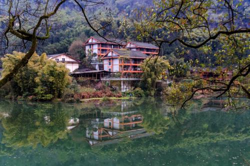 廣濟(jì)禪師根據(jù)寺周山水懷抱的天然風(fēng)貌,又見亭、臺、樓、閣與流水潺潺和諧相融,即取晉朝詩人左思《招隱詩》中的“何必絲與竹,山水有清音”中的“清音”二字,改寺名“清音閣”,后廣濟(jì)禪師圓寂在后牛心寺。在清音閣深夜聽“清音”,是最好的黃金時(shí)段,早在1200多年前就大有人在了:唐代初年的高僧繼業(yè)三藏,從印度研經(jīng)歸來,常信在大峨寺后的呼應(yīng)庵中。夜聽清音,已成了他多的癖好,每每必至,往返六十多里,風(fēng)雨無阻;還留下了一段美好的傳說:在一個(gè)月明星衡的秋夜,他喜孜孜的傾聽著“清音”返回庵中。在黑、白二水匯流處,高興地拾得一枚奇石,竟如人面,眉清目秀,活生生的呼之個(gè)人成分出,以為至寶,供奉前,見石之處,后名“寶現(xiàn)溪”。而今,雖然人面寶石不見了,但“寶現(xiàn)溪”這個(gè)地名是無法磨滅的,至今還泛起人們聽清音的興頭。在清音閣,可看到山光水色,聞到花草芬芳,聽到流泉清音,觸摸到亭臺碑石。它集中了視覺美、聽覺美、嗅覺美,使游者獲得峨眉風(fēng)光總體的審美感受;古今游人多稱譽(yù)為“峨眉山第一風(fēng)景”。周邊景色優(yōu)美,玲瓏精巧的樓閣居高臨下。中部,是丹檐紅樓的接御、中心二亭、亭兩側(cè)各有一石橋、分跨在黑白二水之上,形如雙翼,故名雙飛橋。近景,則為匯合于牛心亭下的黑、白二水。右側(cè)黑水,源出九老洞下的黑龍?zhí)?,繞洪椿坪而來,水色如黛,又名黑龍江;左側(cè)白水,源出弓背山下的三岔河,繞萬年寺而來,水色泛白,又名白龍江。版權(quán)所有山東聊城聊之旅國際旅行社有限公司,轉(zhuǎn)載必究!兩江匯合沖擊著碧潭中狀如牛心的巨石,任其黑、白二水洶涌拍擊,仍巍然不動,組成獨(dú)具特色的寺廟、山水、園林環(huán)境?!拔煨缌印敝粍⒐獾芤睬擅畹貙⒍蛞皇爬椋骸半p橋兩虹影,萬古一牛心”。這樣如詩如畫的“雙橋清音”是“峨眉山十景”之一;這里一年四季,無論晝夜,滿回蕩著水聲,這水聲單一而清晰,加上兩橋,故而譽(yù)為“雙橋清音”,成為峨眉十景之一。交通信息編輯從五顯崗?fù)\噲霾叫屑s30分鐘可到。地理位置編輯清音閣位于峨眉山風(fēng)景區(qū)的核心地段,左通洪椿坪、仙峰寺,右達(dá)白龍洞、萬年寺,為上山朝拜、觀光必經(jīng)之地。