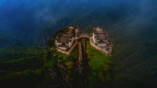 紅云金頂:山峰拔地而起,垂直高差達(dá)百米。上半部分一分為二,由天橋鏈接,兩邊各建一廟,一邊供奉釋迦佛,一邊供奉彌勒佛。由此印證現(xiàn)代佛(釋迦牟尼)向未來佛(彌勒佛)的交替。晨間紅云瑞氣常饒四周,人稱紅云金頂。