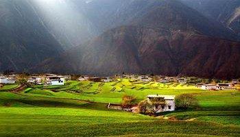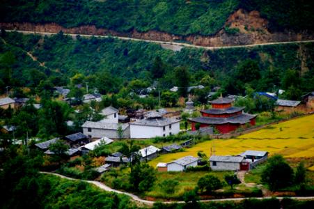 秋那桶村是一個(gè)以優(yōu)美的田園風(fēng)光著稱的小小村落,在丙中洛的最北端,不多的幾戶人家散落于山谷中的平地上。從這里再往前走,經(jīng)過(guò)一段沒(méi)有人煙的地帶,就可以進(jìn)入西藏了,這里是怒江的終點(diǎn)。
