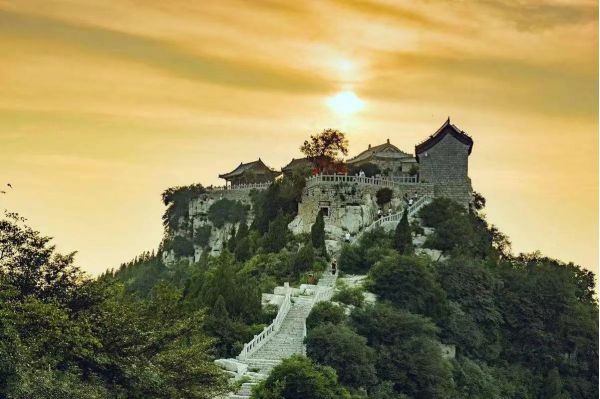 云門(mén)山風(fēng)景區(qū)山腰處是“望壽閣”,原為元朝時(shí)期的“靈官?gòu)R”,后毀于戰(zhàn)火,1984年重修。因這里與山頂?shù)摹皦邸弊诌b遙相望,于是更名為“望壽閣”。閣內(nèi)的正殿建于懸崖之上,高大宏偉,古樸壯觀,正門(mén)匾額上書(shū)“望壽閣”三個(gè)大字,為著名書(shū)法家啟功題寫(xiě)。殿內(nèi)供奉福、祿、壽三星,東西兩邊的廂房里供奉關(guān)公和財(cái)神,許多游客喜歡在此進(jìn)香拜神,希冀自己和家人一生平安,萬(wàn)事如意。