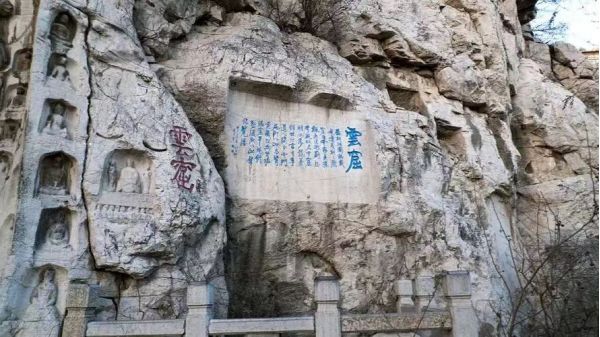云門(mén)仙境,歷來(lái)頗得佛、道兩教的青睞,山陽(yáng)有大小5個(gè)石窟,石刻造像272尊,主要為西方三對(duì)像,也有力士、釋迦多寶二佛說(shuō)法像等。有題記者可追溯至開(kāi)皇九(589)年,雖經(jīng)1400年的滄桑變易,風(fēng)雨剝蝕,這些造像仍然保存基本完好。明清兩代,在云門(mén)山題刻者更多,這些題刻和碑碣都是研究我國(guó)古代書(shū)法藝術(shù)和云門(mén)山之歷史較為準(zhǔn)確的資料,在眾多的題刻中最有名的是山陰處海內(nèi)外罕見(jiàn)的巨大鐫刻"壽"字,該字結(jié)構(gòu)嚴(yán)謹(jǐn),端莊大方,坐南朝北,通高7.5米,寬3.7米,單是下部的"寸"字就高2.22米,為大個(gè)頭的漢子所不及,故當(dāng)?shù)赜?壽比南山"、"人無(wú)寸高"之說(shuō)。云門(mén)山四周青山逶迤,峰巒秀麗,松柏疊翠,森林幽深,空氣清新,環(huán)境靜謐,與整潔優(yōu)美、繁盛發(fā)達(dá)的市區(qū)連接映襯,構(gòu)成群山連翠,障城如畫(huà)的靚麗風(fēng)光。北宋著名的政治家、人稱“鐵面御史”的趙抃曾于熙寧知青州,他在《詠云門(mén)山》一詩(shī)中贊美云門(mén)山曰:“十里崢嶸到忽平,兀然如覺(jué)夢(mèng)魂醒。石通幽室心生白,徑擁寒云步入青。一水下窺絕線,兩山前列似開(kāi)屏。重城歸去仍堪喜,歲年稔人家戶不扃?!秉S庶(黃庭堅(jiān)之父)曾任青州通判,他也賦詩(shī)贊美云門(mén)山曰:“區(qū)區(qū)霸跡欲知小,試絕大云孤頂看。老僧指我日上處,鏡面瀉出黃金盤(pán)。”