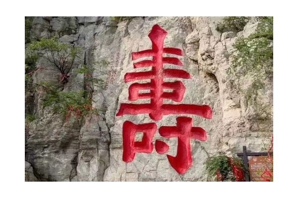 山陰處海內(nèi)外罕見(jiàn)的巨大鐫刻"壽"字是“壽比南山”典故的出處,該字結(jié)構(gòu)嚴(yán)謹(jǐn),端莊大方,坐南朝北,通高7.5米,寬3.7米,單是下部的"寸"字就高2.22米,為大個(gè)頭的漢子所不及,故當(dāng)?shù)赜?壽比南山"、"人無(wú)寸高"之說(shuō)。這個(gè)"壽"字是明嘉靖年間衡王府內(nèi)掌司冀陽(yáng)周全所獻(xiàn)書(shū)。端詳此"壽",字體揮灑俊逸,筆劃圓泣流暢,雖千鑿百斧雕成,卻不露分毫痕跡,充分體現(xiàn)了勞動(dòng)人民的聰明智慧,是書(shū)法石刻藝術(shù)的瑰寶。自此,青州官民,朝野上下,去云門(mén)山拜壽的人絡(luò)繹不絕,已有400余年的歷史了。眾從的中外游客都把能到云門(mén)山參拜大壽字作為自己最大的心愿。