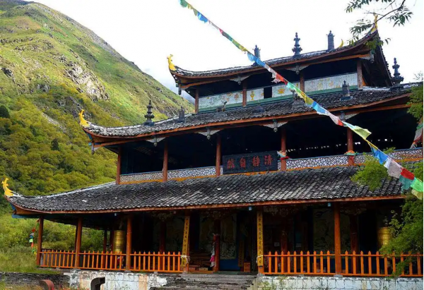 黃龍中寺占地約500平方米,黃龍中寺始建于明朝,屬藏傳佛教苯教寺廟。建筑古樸雄偉,殿內塑像做工精細,體現了黃龍景區(qū)內藏漢民族宗教相互融合的文化特點。中寺位于爭艷池和五彩之間,紅松等針葉林滿山,杜鵑林等植物遍地,環(huán)境幽雅。