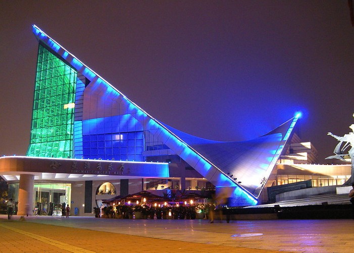 星海音樂廳位于廣州二沙島,造型奇特的外觀,富于現(xiàn)代感,尤如江邊欲飛的一只天鵝,與藍(lán)天碧水渾然一體,形成一道瑰麗的風(fēng)景線。這座以人民音樂家冼星海的名字命名的音樂廳,占地1.4萬平方米,建筑面積1. 8萬平方米,設(shè)有1500座位的交響樂演奏大廳、460座位的室內(nèi)樂演奏廳,100 座位的視聽欣賞室,和4800平方米的音樂文化廣場(chǎng)。整體建筑為雙曲拋物面鋼筋混凝土殼體,室內(nèi)不吊天花板,做到建筑空間與聲學(xué)空間融為一體。星海音樂廳總投資達(dá)2.5億元,是我國(guó)目前規(guī)模最大,設(shè)備最先進(jìn),功能完備,具有國(guó)際水平的音樂廳。