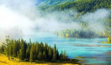 游天池可從烏魯木齊乘汽車前往,上山時(shí)山路蜿蜒曲折,伴隨一條奔騰的溪流,這是來(lái)自天池的水,清澈的溪水沖擊巖石時(shí)激起雪白的浪花,使人感到一股清新氣息。