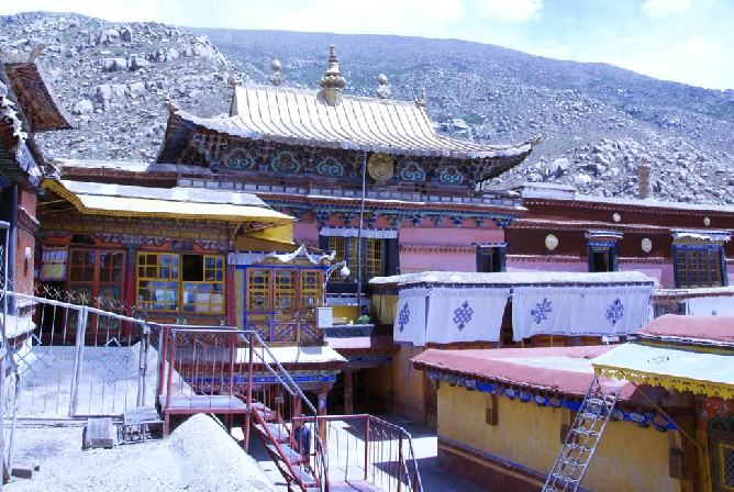 從拉薩市中心坐4路公交、出租車或者三輪車只能到山腳,然后要徒步30分鐘上山。寺廟每周三都有法事活動,眾喇嘛齊聚一堂念經(jīng),場面壯觀。