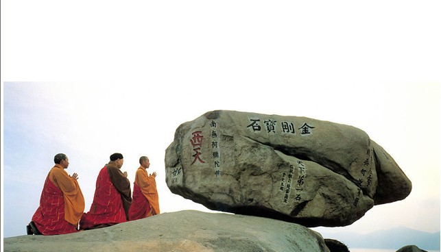 慧濟(jì)禪寺建于佛頂山上,又名佛頂山寺。普陀山奇巖怪石很多。著名的有磐陀石、 二龜聽法石、海天佛國(guó)石等二十余處。在山海相接之處有許多石洞勝景,最著名的是潮音洞和梵音洞。島的四周有許多沙灘,但主要的是百步沙和千步沙。千步沙是一個(gè)弧形沙灘,長(zhǎng)約3里,沙細(xì)坡緩,沙面寬坦柔軟,是一個(gè)優(yōu)良的海水浴場(chǎng)。夏天去游覽,可帶上游泳衣在這里暢游。