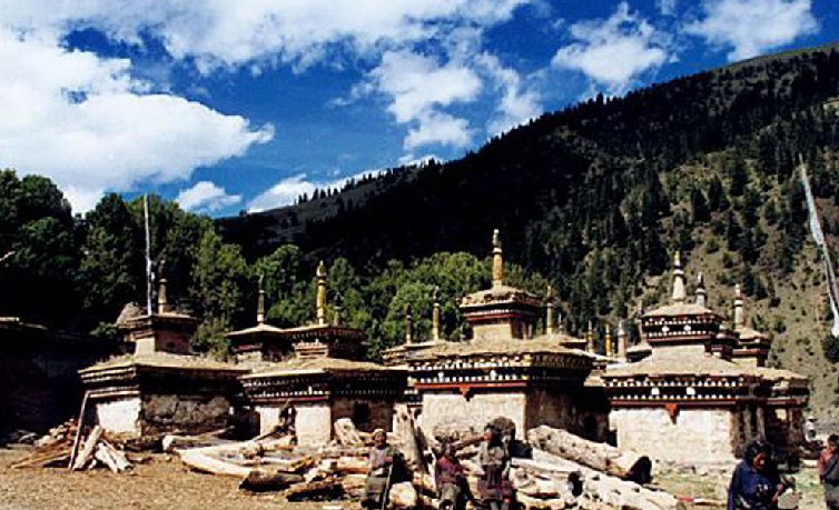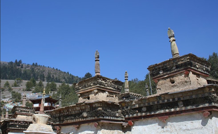 卡瑪多塔林位于類烏齊縣國(guó)道317線右側(cè),距縣城25公里。塔林依山位傍水、風(fēng)景秀麗、古木參天、蒼松翠柏、四季常青。在蔥郁翠柏中有一座別致的小經(jīng)堂,主供蓮花生大師像,左右各豎有幾根高大的轉(zhuǎn)經(jīng)筒。傳說(shuō),過(guò)去這兒有108個(gè)塔,現(xiàn)已恢復(fù)和修建的塔有幾十座。其造型各異,別具一格,既有要求嚴(yán)格的八佛塔,也有方形怪塔;既有幾米高的大塔,也有不到三米的小塔。