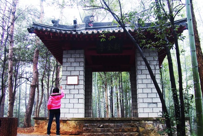 斷金亭 在梁山支脈狗頭山,西臨懸崖巨壑。是當(dāng)年林沖為納晁蓋等七好漢入伙,火并白衣秀士王倫的地方?,F(xiàn)已修復(fù)斷金亭,并在亭下修建