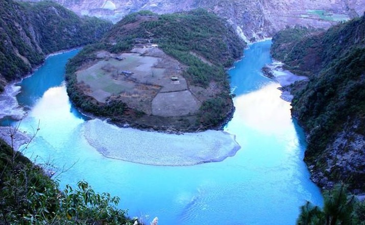 曲南河源于卡瓦格博主峰,由北向南,貫穿雪山,一路匯聚諸多雪山之水,洶涌澎湃奔向怒江。河畔三角形的曲那通壩子,是天然的三角形法源宮(金剛空行母的標志),其中有猛利神鐵杵三件。曲南河河水聲是念誦勝樂金剛的心咒和《大般若經(jīng)》、《甘珠爾》、《丹珠爾》經(jīng)文的誦經(jīng)聲。曲南河橫在行人面前,讓人望而生畏,自古外轉(zhuǎn)卡瓦格博行人最怕的就是過曲南通大河。不過這已經(jīng)成為歷史,2000年,紅坡寺扎巴活佛發(fā)動云嶺鄉(xiāng)民,集資修建了一座新橋。現(xiàn)在這一座鐵索橋橫跨在大河之上,橋墩也是混凝土澆灌,行人可以安然而過。
