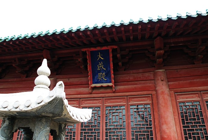 莘縣文廟始建于明洪武三年,系舊時祭祀孔子的場所。文廟原由欞星門、大成殿、啟圣祠、明記堂、敬亭、名宦鄉(xiāng)賢二祠等組成,現(xiàn)僅存大成殿。文廟占地面積2439平方米,大成殿建臺基上,面闊五間,東西闊19米;進(jìn)深三間,南北長11.8米 ,單檐歇山頂。殿內(nèi)的檐柱、前金柱、后金柱的直徑均很碩大,金柱高4.4米 ,前后金柱上擱置著七架梁、五架梁、三架梁。殿內(nèi)的脊檁枋下釘一塊木板,木板上有題記:“ 大明弘治十二年歲次己未秋七月吉旦提調(diào)官知縣孟□門主□桂……”。版權(quán)所有山東聊城聊之旅國際旅行社有限公司,轉(zhuǎn)載必究!在殿內(nèi)前上金檁枋下釘?shù)哪景迳线€有二則題記,分別是:“大明崇禎六年歲次癸酉中秋吉旦……”和“大清乾隆貳拾年歲次乙亥陸月吉旦文教郎知莘縣事儒學(xué)……。”大成殿的木柱和梁架風(fēng)格古樸,有元末明初的特征,具有較高的文物價值。
