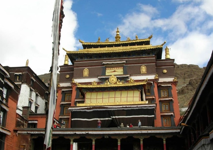 錯欽大殿為該寺最早建筑。殿前有一500平方米的講經(jīng)場,是班禪向全寺僧眾講經(jīng)和僧人辯經(jīng)的場所。大殿內同時可容2000多人誦經(jīng)。供奉的佛像除釋迦牟尼佛及其大弟子外,兩邊柱上還刻有建寺人根敦主與四世班禪的立像;周圍有宗喀巴師徒和80位高僧造像等。