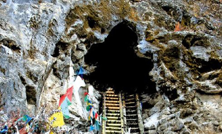 如同一堆鋒利的兵器,整個形態(tài)象度母靜坐。洞口寬約8米,高近2米,洞深40余米,自上而下有自然形成的蓮花生大師、南木朗•多吉堆窘大譯師等六個修行洞,及自然形成的形態(tài)逼真的米拉日巴、十六羅漢、大象、蝎子、天龍、地蛇、月亮、太陽等80余種畫面。