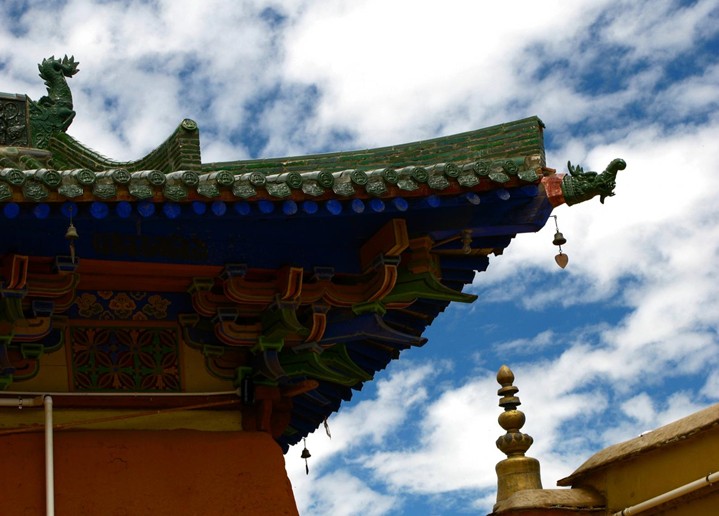 寺的大殿,分前后正殿及左右配殿。大殿的底層是合成一體,二層以上則四殿分立。皆為木構梁架琉璃瓦頂。這是一座具有西藏傳統(tǒng)形式與內地結構造型相結合的,特殊風格的古建筑群。