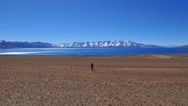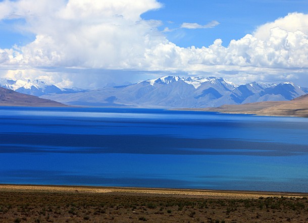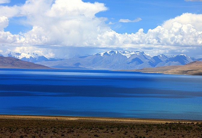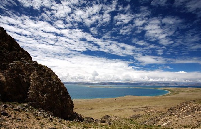 當(dāng)惹雍措是藏北著名神湖,它位于那曲地區(qū)的一個(gè)深陷的湖盆底部,它與當(dāng)惹雍措相毗鄰。當(dāng)惹雍措湖面形似一金剛杵,上圓中細(xì)下部長,四面群山環(huán)抱,南面的達(dá)爾果山山頂積雪終年不化。實(shí)際上當(dāng)窮措與當(dāng)惹雍措是在同一個(gè)湖盆之內(nèi),湖水未枯以前本是同一湖泊。這正是當(dāng)窮措名字的來歷,藏語里當(dāng)窮措即小的當(dāng)惹雍措之意。據(jù)說此湖在一天之中能變換三種顏色。湖東岸是連綿不斷、屏風(fēng)般矗立的褚紅色山壁,它們清晰地記錄了當(dāng)惹雍措湖水一次次下降的歷史。被湖水沖刷而成的階梯從湖畔山頂一圈又一圈地一直環(huán)繞到湖濱。