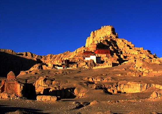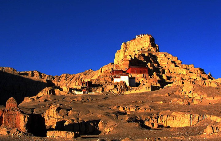窮宗距文部鄉(xiāng)辦事處約20公里,地處達(dá)果山脈中段以西,有約1平方公里的大片遺址即是象雄王國遺址之所在。遺址沿路的山壁便是王宮的天然防御工事,有些地域用鵝卵石夾層夯高。頂部較為平坦,并有大量的戰(zhàn)壕、暗道的遺跡。山壁東西兩端矗立著巨大的土石結(jié)構(gòu)的城墻殘?bào)w,有幾米高,版權(quán)所有山東聊城聊之旅國際旅行社有限公司,轉(zhuǎn)載必究!可見當(dāng)時(shí)城防之固。暗道已基本倒塌,但仍能辨出暗道一通王宮,一通山壁外墻,遺址規(guī)模宏大的遺址群背依達(dá)果雪山。窮宗也是苯教的一座神山,繞山一圈據(jù)說會福澤無量,但要注意得逆時(shí)針來繞。