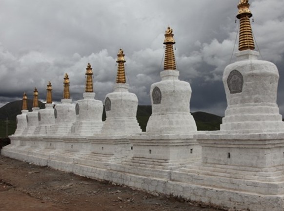 位于青藏公路當(dāng)雄至那曲約三分之一段路旁,蒼茫的大草原上兀立這一組塔群使草原又帶上了幾分神秘悲壯色彩。據(jù)傳當(dāng)年格薩爾王曾率兵在這里馳騁征戰(zhàn),他旗下的一名大將夏巴戰(zhàn)死于此。為表彰夏巴的功勛,格薩爾修筑八塔安葬夏巴。