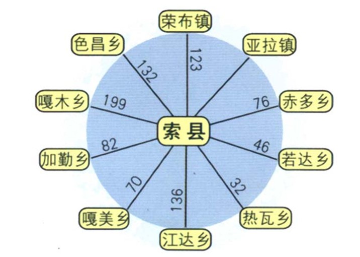 2002年,索縣由1區(qū),1鎮(zhèn)11鄉(xiāng),141村委會調(diào)整為2鎮(zhèn)、8鄉(xiāng),6居委會、135村委會:亞拉鎮(zhèn)、榮布鎮(zhèn)、若達鄉(xiāng)、熱瓦鄉(xiāng)、赤多鄉(xiāng)、嘎美鄉(xiāng)、加勤鄉(xiāng)、江達鄉(xiāng)、色昌鄉(xiāng)、嘎木鄉(xiāng)。